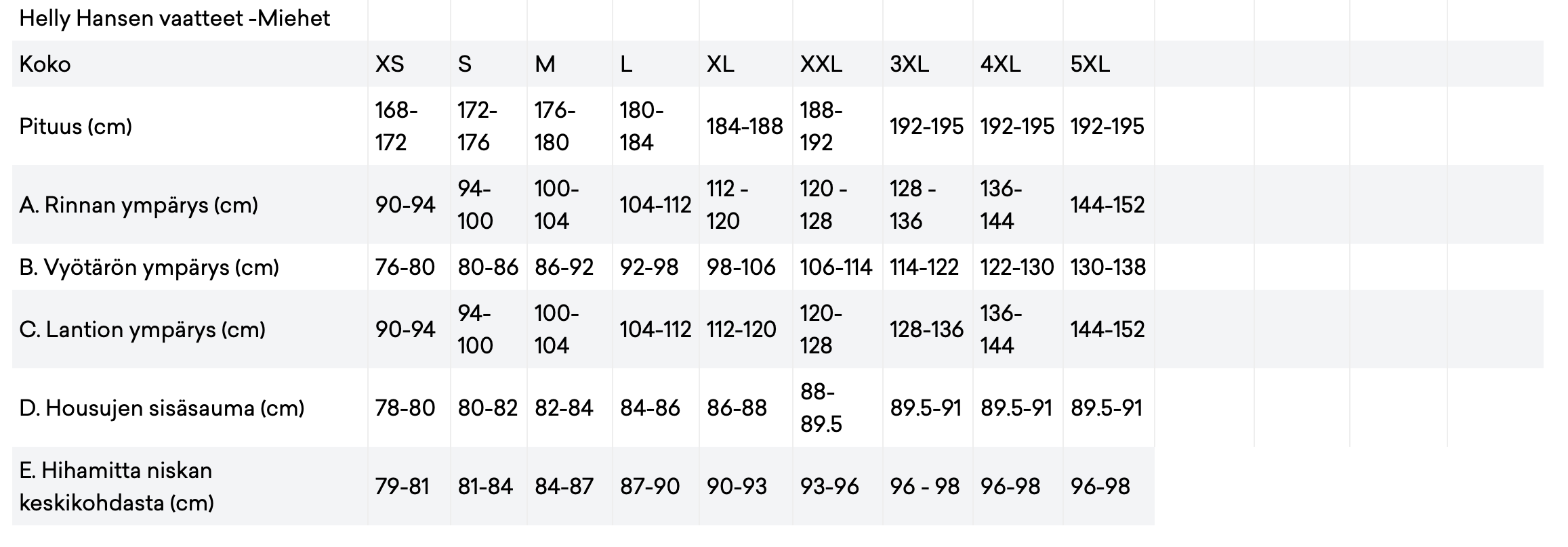 S, M, L, XL, 2XLKatso kokotaulukko (png)
