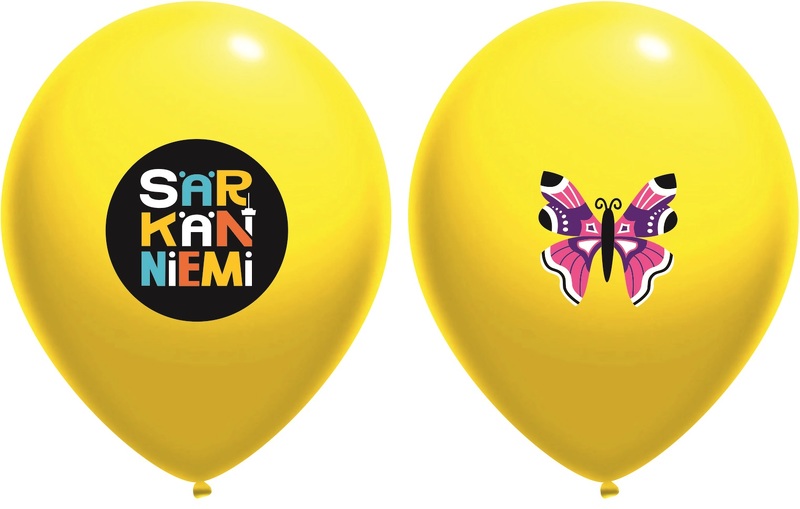 Mainosilmapalloja haluamasi määrä+ ilmapallotikut ja sidontakupit näytteillepanoon tai jakamiseen – kaikki helpossa paketissa!
