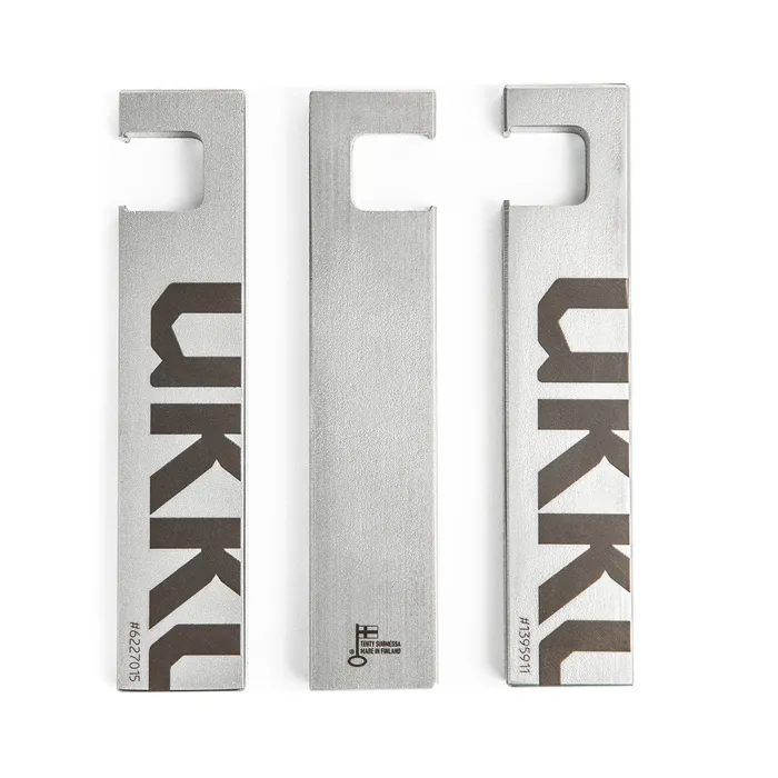 UKKOMATTI 100 ORIGINAL Kourassa tuntuvaa suomalaista muotoilua ja huulilla pohjolan viima. VIP-lahjojen aatelia. Valmistettu meijeriteräksestä, joka täyttää elintarvikesäädökset. Valmistettu Eteläpohjanmaalla koneistamalla ja laserhitsaamalla ammattimaisten käsityöntaitajien toimesta. Tuote toimitetaan upeassa lahjapakkauksessa. Nahkatuppi on valmistettu laadukkaasta parkkinahasta sen avulla taskumatti on helppo heittää esimerkiksi vyölle roikkumaan. Nahkatupen valmistaa kauhavalainen puukontekijä käsityönä.