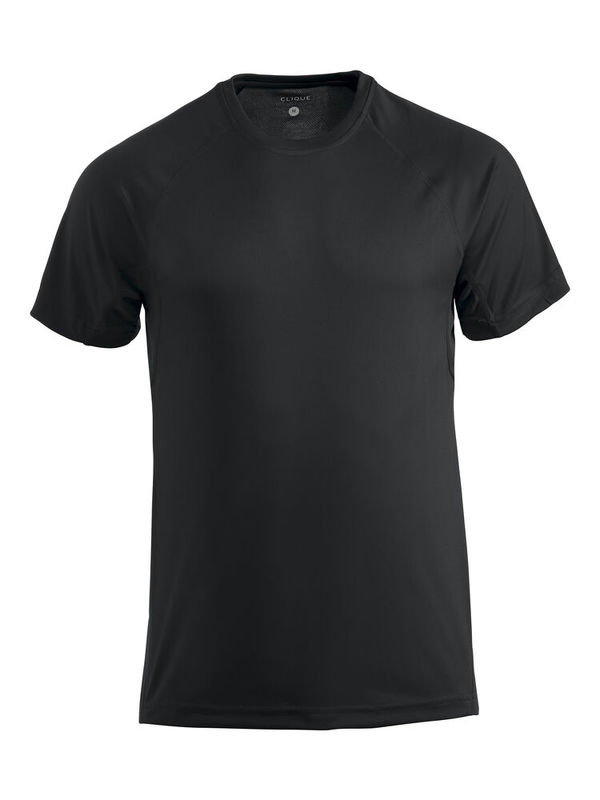 Urheilullinen t-paita teknisestä materiaalista. Selkäpuolella birds-eye -neulosta.