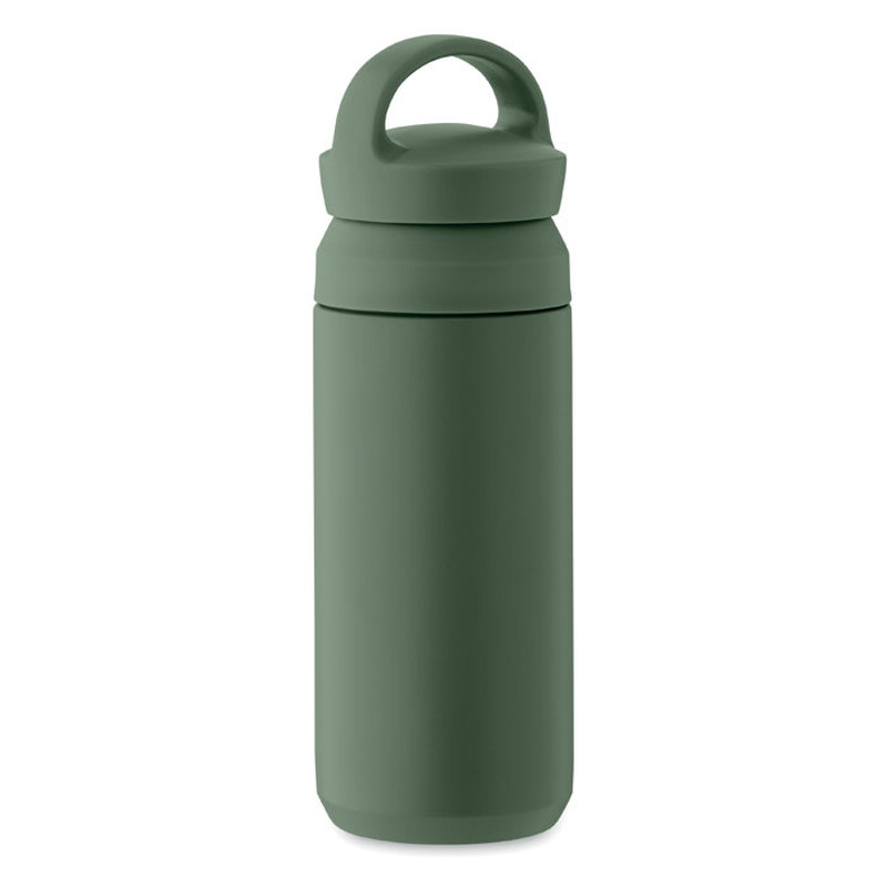 Kaksiseinäinen tyhjiöeristävä pullo kierrätetystä ruostumattomasta teräksestä (90 % kierrätettyä ruostumatonta terästä ja 10 % ruostumatonta terästä), jossa on PP-kansi, joka on avattava helposti puhdistettavaksi. Vuotamaton. Tilavuus: 320 ml.
