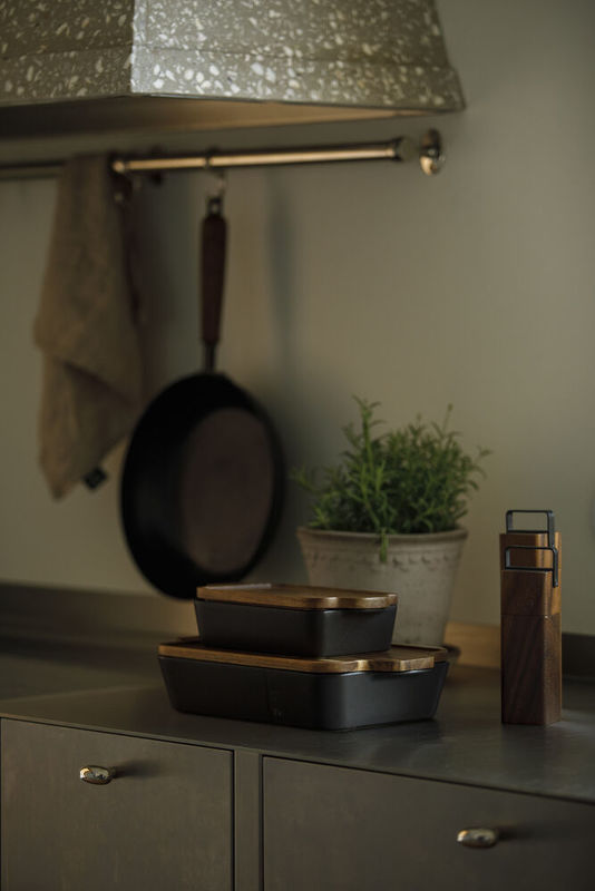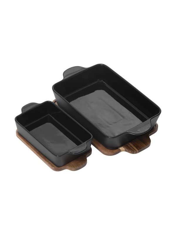 Vankat uunivuoat rouhealla, mattamustalla pinnalla. Valmistettu kestävästä, osittain kierrätetystä kivitavarasta. Täydelliset uunijuureksille, gratiineille tai rustiikkiselle piirakalle. Tyylikäs lahja kauniissa lahjapakkauksessa.