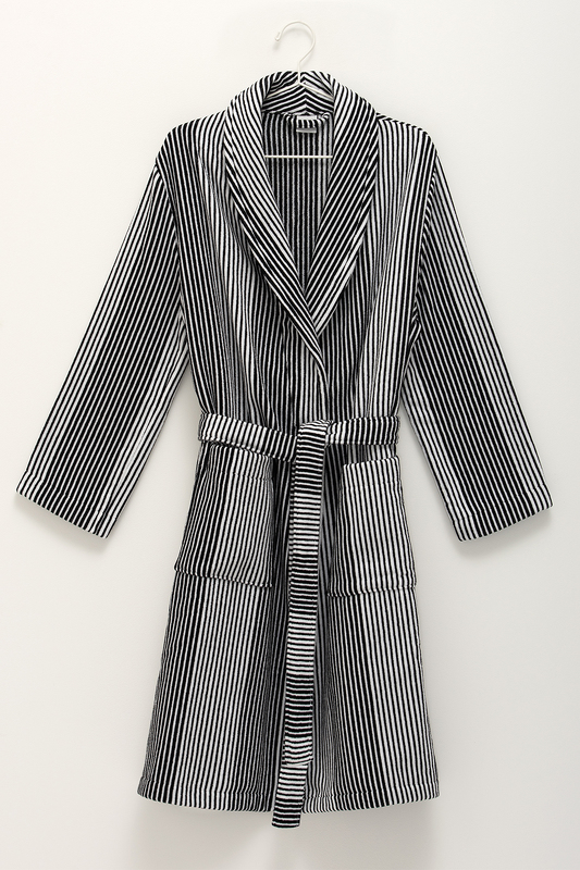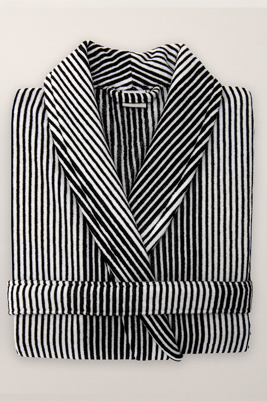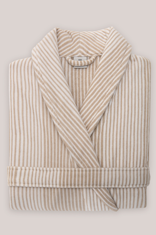 Ihana uutuus, raidallinen Horizon- sarja, josta löytyy sekä kylpytakki että kylpypyyhe. Velour tekee tuotteesta ihanan muhkean ja pehmeän.