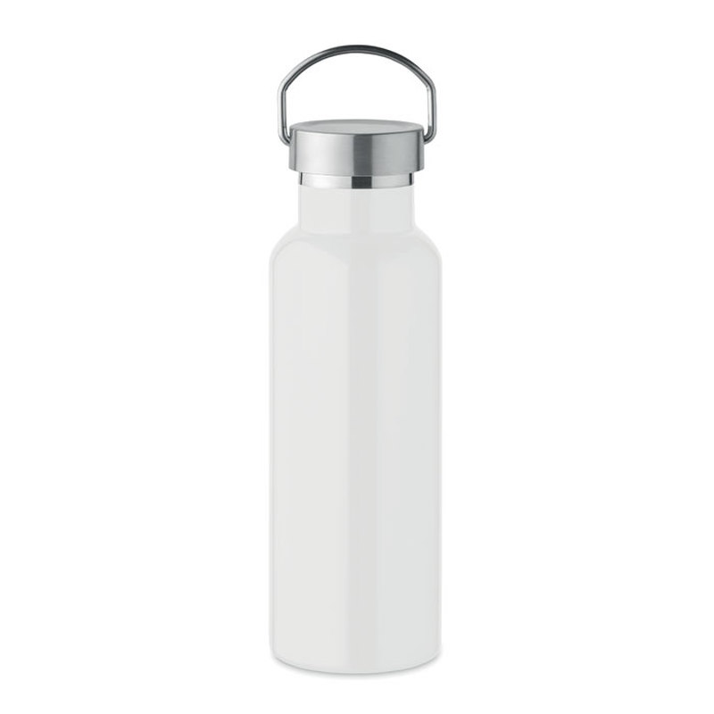 Kaksiseinäinen eristävä tyhjiöpullo kierrätetystä ruostumattomasta teräksestä (90 % kierrätettyä ruostumatonta terästä ja 10 % ruostumatonta terästä), jossa on kahvallinen korkki. Tilavuus: 500 ml.