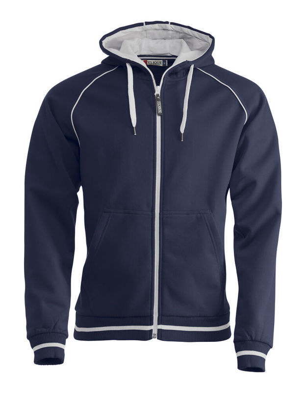 Sporttinen takki, joka siirtää kosteuden ulospäin ja pitää olon miellyttävän kuivana. Täyspitkä vetoketju. Hupun sisäpinta, tereet ja resorin koristeraita ovat kontrastivärillä.
