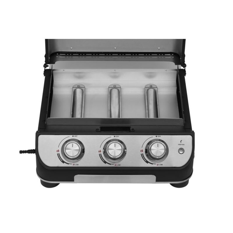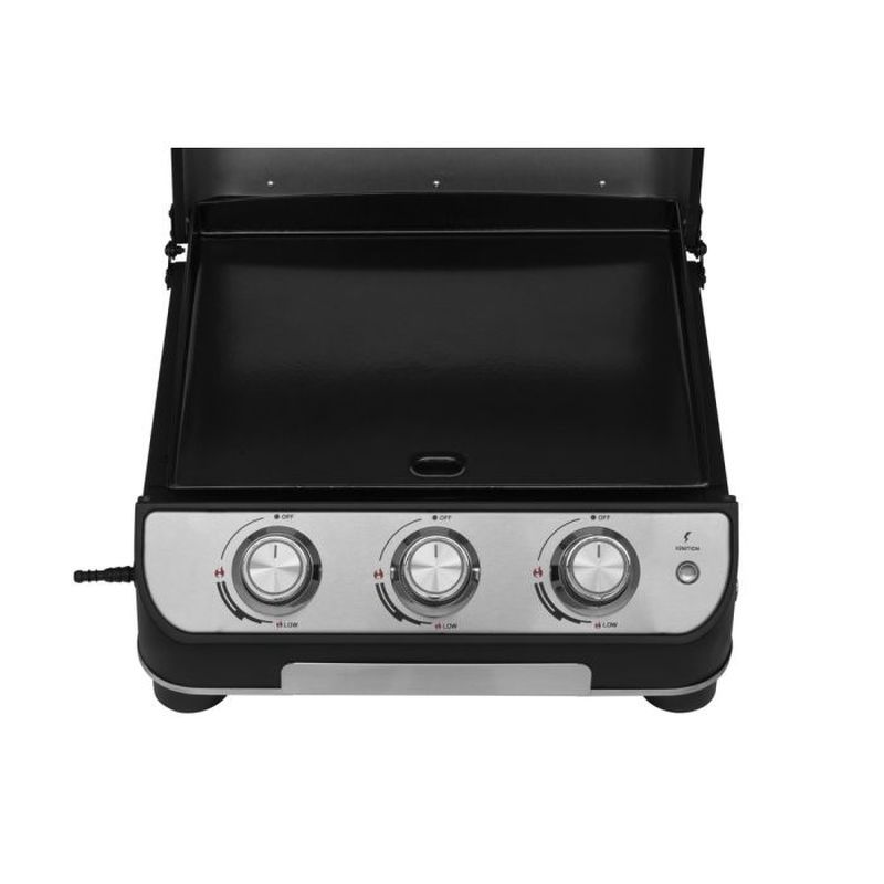 Pöydällä pidettävä plancha/parilagrilli kolmella polttimella. Polttimet 3 x 2,5 kW. Kokonaisteho 7,5 kW. Grillausala 41 x 35 cm. Plancha/paistoparila valmistettu emaloidusta teräksestä. Grillin runko ja kansi valmistettu pulverimaalatusta teräksestä. Ohjauspaneeli ruostumatonta terästä. LED valot säätönupeissa, jotka vaihtavat väriä, kun poltin on päällä. Paristotoiminen sytytys. Voidaan grillata/paistaa myös kansi kiinni. Parila on helppo irrottaa pesua varten. Grillin alla ulosvedettävä rasvakaukalo. Vain ulkokäyttöön. Takuu 2 vuotta.