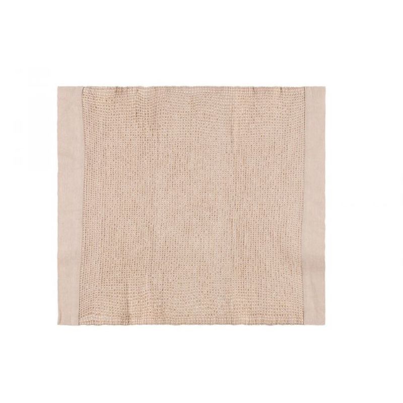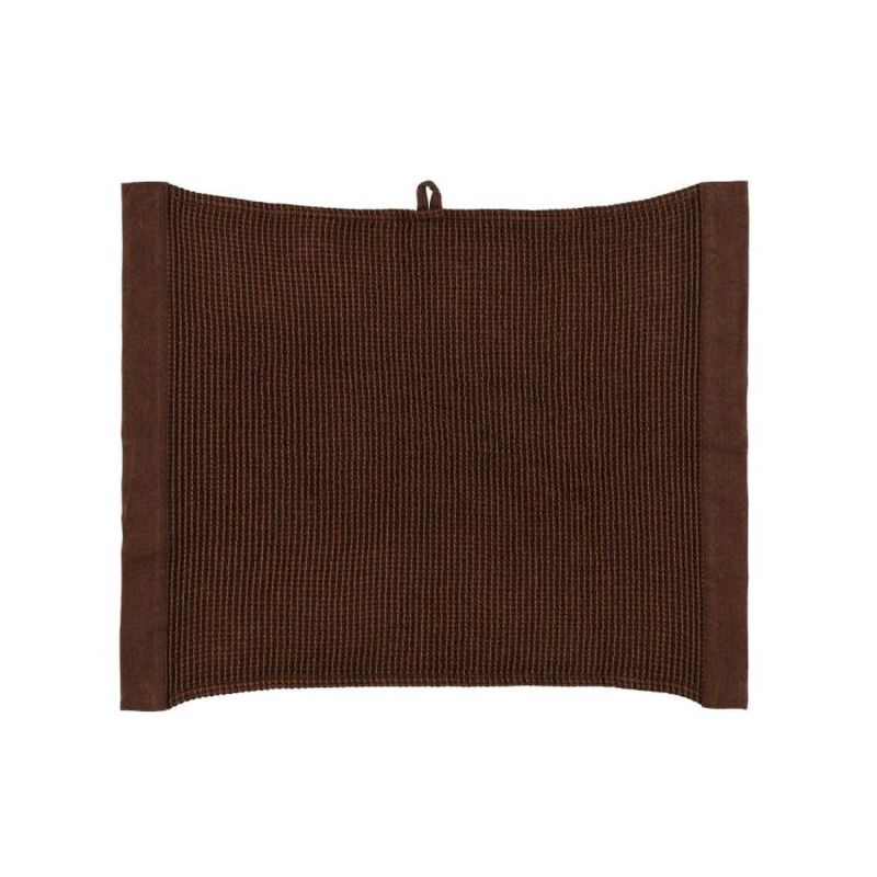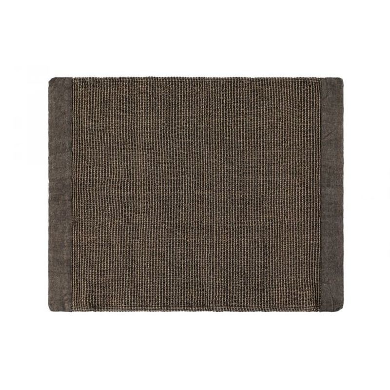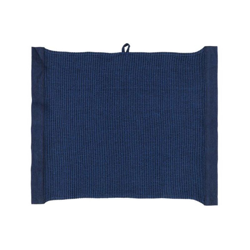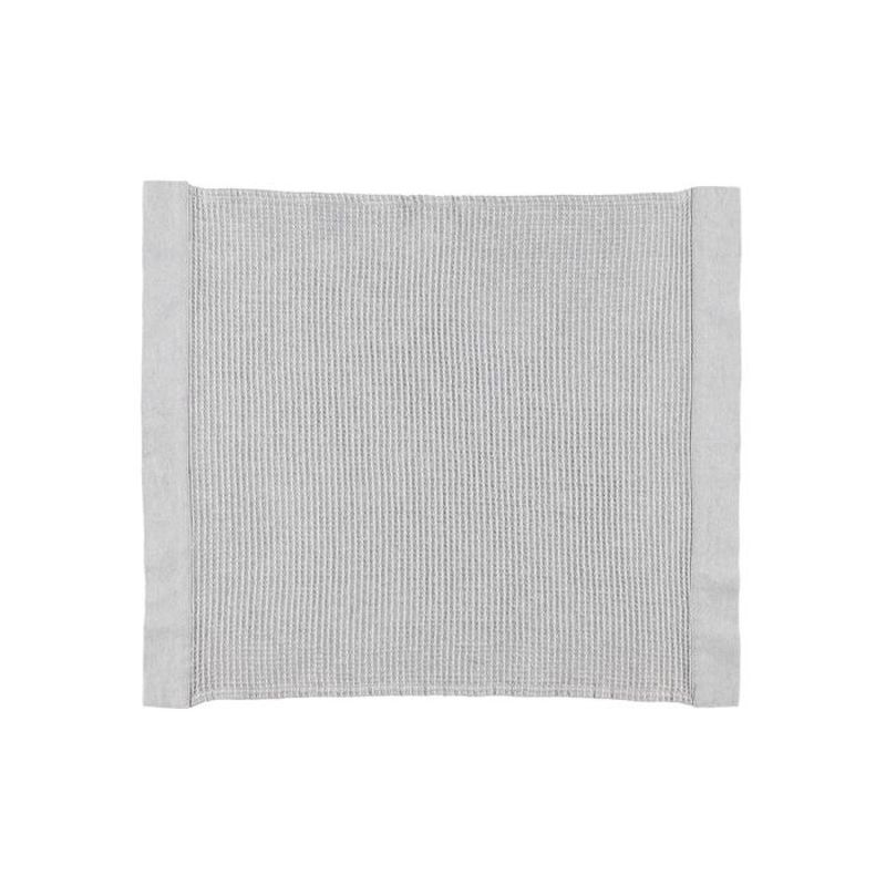 Lokoisa laudeliina chambray-kanttauksilla. Kierrätysmateriaalista valmistetuille Kenno-saunatekstiileille on ominaista kankaan pehmeys ja eloisa tekstuuri. Varovainen vesipesu 60 astetta.