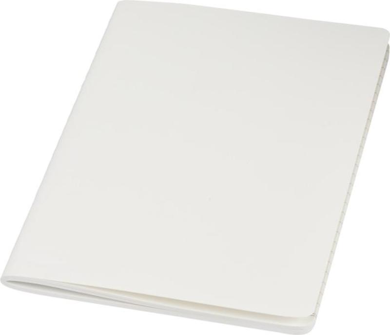 Repeämätön cahier-muistivihko, jonka 32 arkkia ovat 144 g/m²:n valkoista kivipaperia. Kivipaperi on sataprosenttisesti puutonta ja tuotantoprosessissa käytetään vähemmän energiaa verrattuna kierrätettyyn tai uuteen sellupaperiin. Se on vedenkestävä, joten kaatuneet nesteet on helppo pyyhkiä pois. Koko: 127 x 178 mm. Kivipaperi.