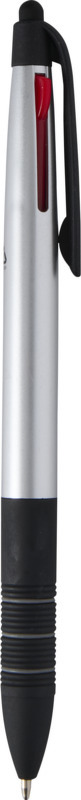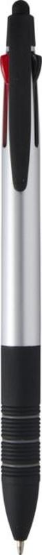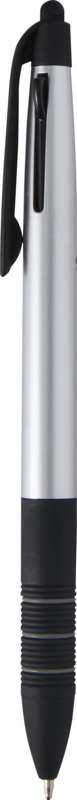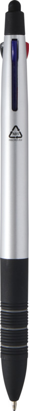 Trine 3-in-1-kuulakärkikynä on monipuolinen kirjoitusväline, joka on valmistettu RCS-sertifioidusta ABS-muovista. Siinä on moderni metallinen pinta ja integroitu stylus-kärki kosketusnäyttöä varten. Siinä on työntöliukumekanismi, jolla voit helposti vaihtaa mustan, sinisen ja punaisen musteen välillä. Ergonomisen kahvan, jossa on mustat liukumattomat kumisuojukset ja harmaat rengasyksityiskohdat, ansiosta sitä on mukava pitää kädessä. Trine kynä on kompakti, toimiva ja ihanteellinen brändäykseen. Se sopii täydellisesti muistiinpanojen tekemiseen, esityksiin tai digitaaliseen vuorovaikutukseen. Kierrätetty ABS muovi.