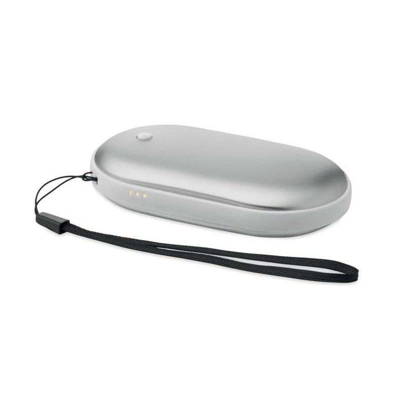 Alumiininen sähköinen kädenlämmitin, jossa on 3 tasoa (45 °C, 50 °C, 55 °C) ja sisäänrakennettu 5000 mAh:n varavirtalähde. Kaksipuolinen lämmitys, Type-C-tulo/lähtö, USB-A- ja DC5V/2A-lähtö.
