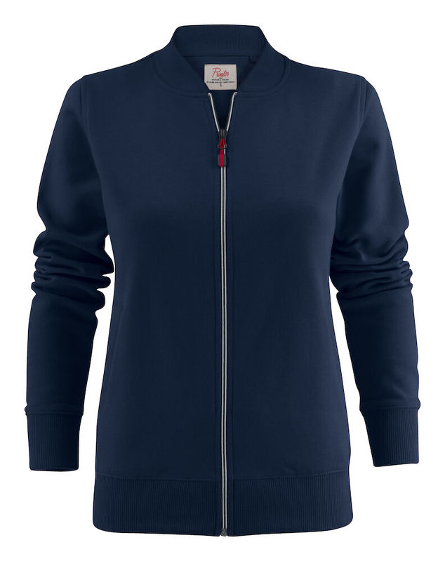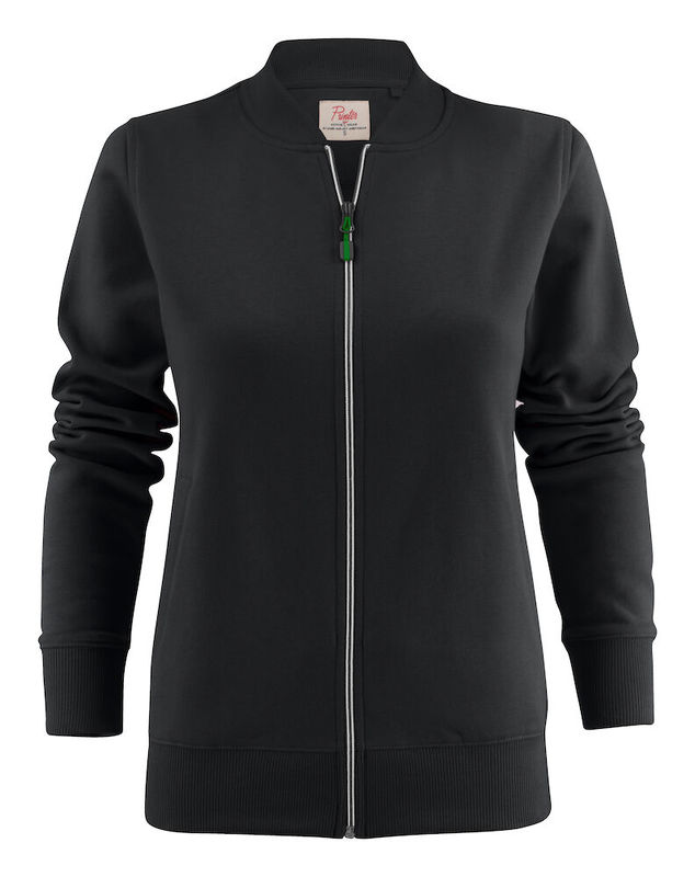 Collegesvetari, jossa joustava resori hihansuissa ja helmassa. Miesten mallissa on pystykaulus ja vetoketjutaskut.