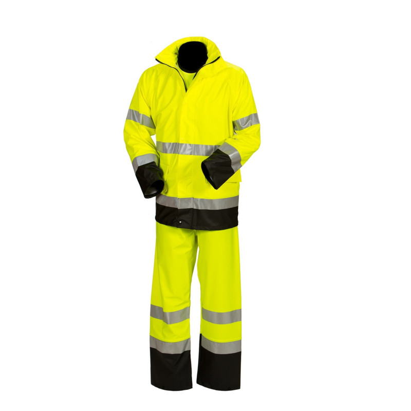 Huomiovärinen sadeasusetti EN 20471/EN 343