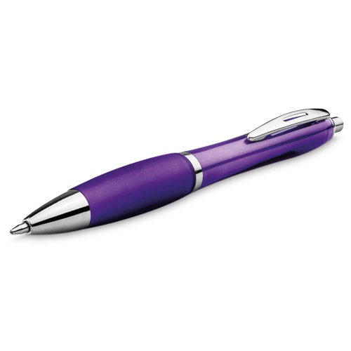 Muovinen kuulakärkikynä kumisella tartuntaosalla, metalliklipsi ja sininen muste. ø13 x 140 mm