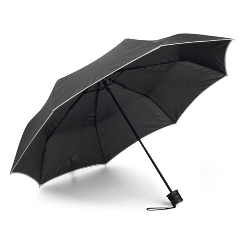 Taittuva polyestersateenvarjo manuaalisella avausmekanismilla ja muovisella kahvalla, 8 paneelia. Taiteltu: ø50 x 240 mm | ø945 x 550 mm