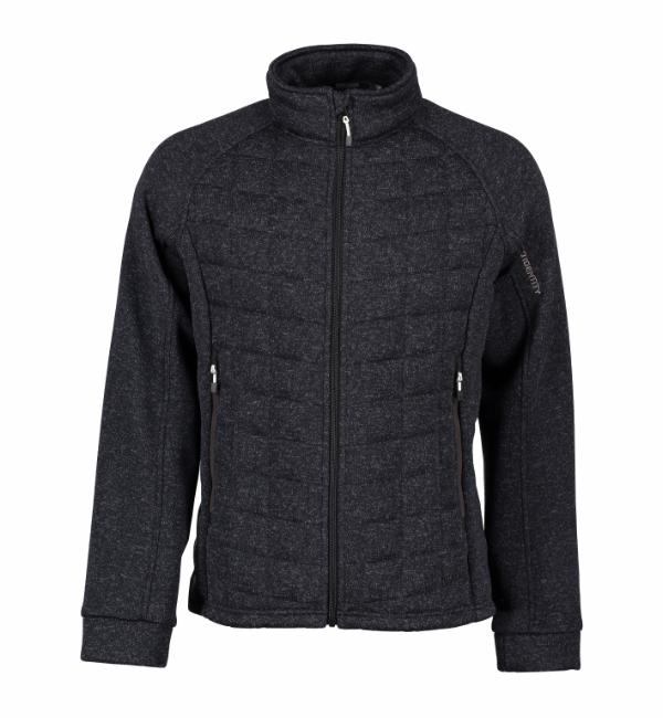 Exclusive quilted melange fleece jacket. The jacket is partially lined and has many appealing details. It has zipper side pockets and an inside side drawstring to keep wind and draughts out. Perfect for both indoor and outdoor use.
