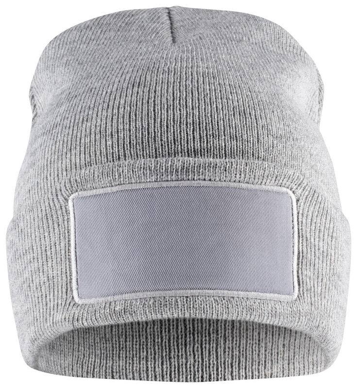 Reunasta käännetty neulospipo. Edessä sileä paikka painatusta varten, koko 4,5 x 9,5 cm.