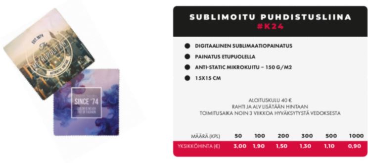SUBLIMOITU PUHDISTUSLIINA
