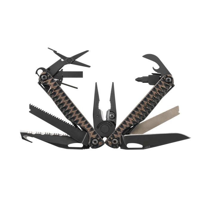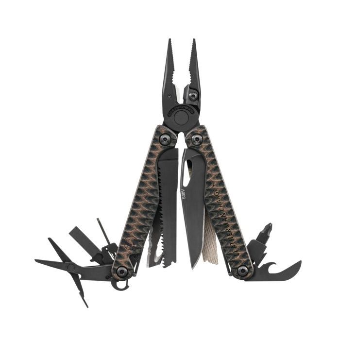Luotettava kestosuosikki Charge PLUS G10 kahvallisena -versiona, jossa myös terä on entistä kovempi. Tummasävytteiset kahvat on karhennettu, joten tämä työkalu pysyy kädessä huonommallakin säällä. Terä erittäin laadukasta ja kovaa S30V terästä. Uudistetussa Charge PLUS monitoimityökalussa sahaterälaitaiseen veitseen on lisätty leikkuukoukku ja sivuleikkurien terät ovat nyt vaihdettavissa. Monitoimityökalujen suosituimmat ominaisuudet koottuna yhteen pakettiin. Sopii erityisen kovaan käyttöön! Charge PLUS G10 Earth on mainio lahjaidea. Mukana toimitetaan musta nyloninen vyökotelo. Tekniset tiedot: Kärkipihdit, Vaihdettavat sivuleikkurit, Suorateräinen veitsi, Sahateräinen veitsi leikkuukoukulla, Saha, Viila, Timanttiviila, Sakset, Mitta, Kaksi kiinteää adapteria, 2 ruuvimeisseliä, 2 ristipäämeisseliä, Johdonkuorija, Pullonavaaja, Tölkinavaaaja, Irroitettava vyöklipsi, Ripustuslenkki, Vaihtokärkisarja 7-osainen, Kaikki terät lukkiutuvat. pituus 10 cm, Paino 235 g