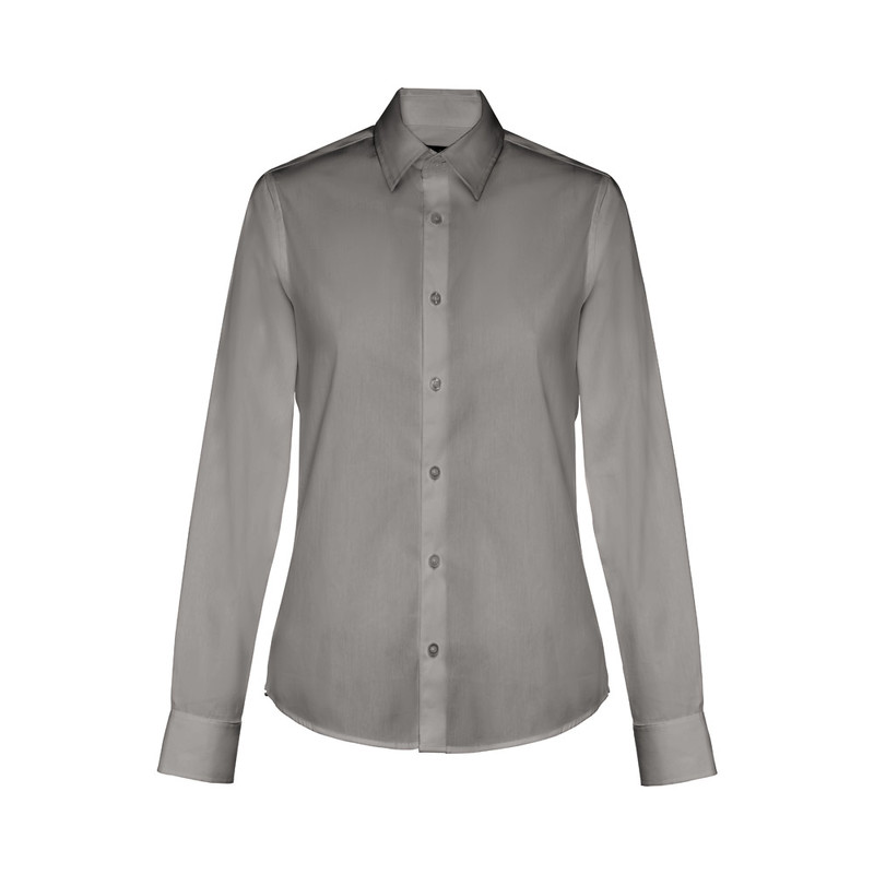 Naisten pitkähihainen popliinipaita 68% puuvillaa, 28% polyamidia ja 4% elastaania (115 g/m²). Säädettävät hihansuut laskoksella ja napilla. Vyötäröltä istuva, takana 2 laskosta. Nappilistassa 7 värillistä nappia. Koot: S, M, L, XL, XXL