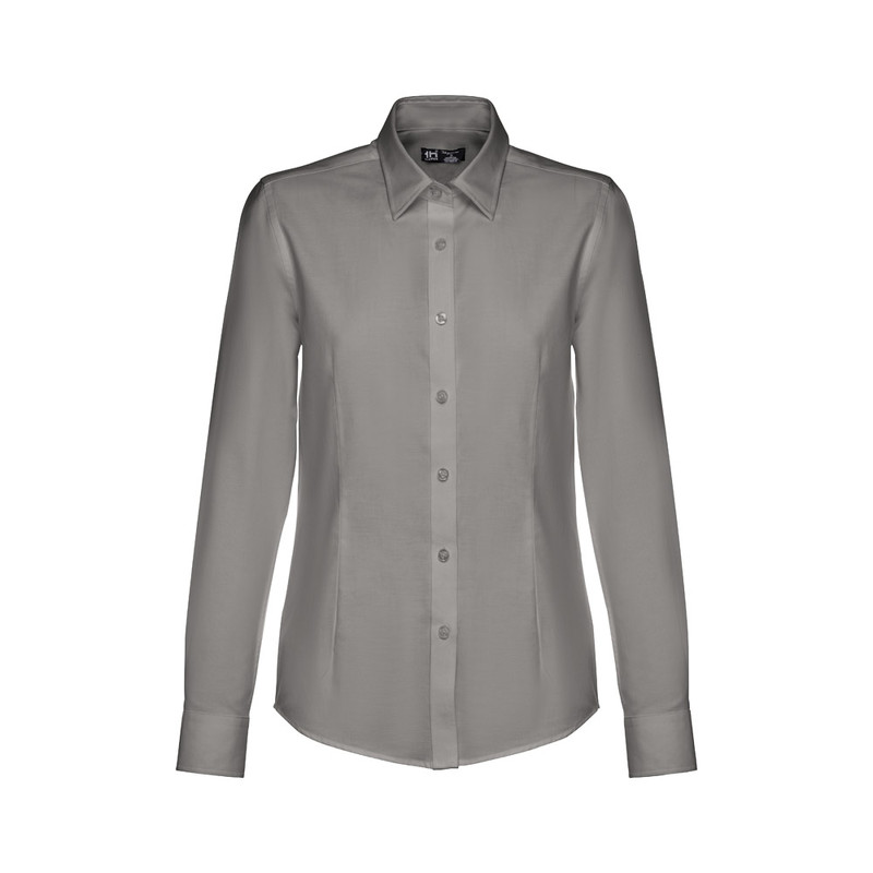 Naisten pitkähihainen oxford-paita 70% puuvillaa ja 30% polyesteria (130 g/m²). Säädettävät hihansuut laskoksella ja 2 napilla. Kauluksessa kaksi nappia ja nappilistassa 7 helmiäisnappia. Istuva malli, takana 2 laskosta.Koot: S, M, L, XL, XXL
