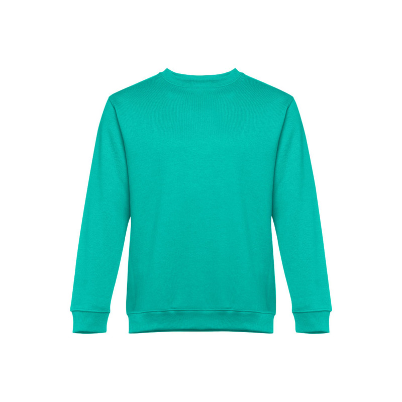 Collegepaita (unisex) 50% puuvillaa ja 50% polyesteria (300 g/m²). Harjattu sisäpinta. Resorikaulus, -hihansuut ja helma. Tukinauha kaula-aukon sisäpuolella.