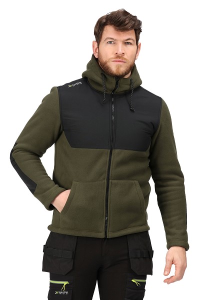 Materiaali: mikrofleece Paino: 440g/m² Koot: S-3XLVahvike kangas rinnassa, olkapäillä, yläselässä ja kyynärpäissäKiinteä huppu ja kiristinnyöri helmassaTaskuissa ei vetoketjuja
