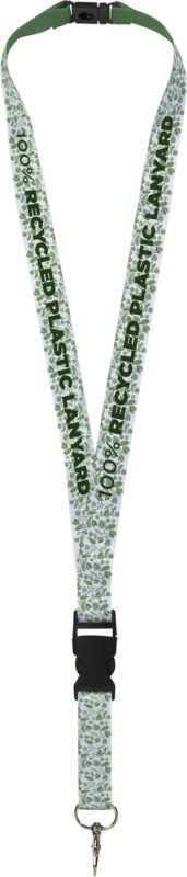 Sublimaatiopainettu kaulanauha kierrätettyä RPET-materiaalia, metallikoukulla ja RPET-muovisoljella sekä turvalukolla. Sublimaatiopainatus molemmilla puolilla. Nauhaan voi kiinnittää nimikyltin, henkilökortin tai avaimet. Saatavana 4 eri leveyttä: 10, 15, 20 ja 25 mm. Kierrätetty PET Polyesteri.