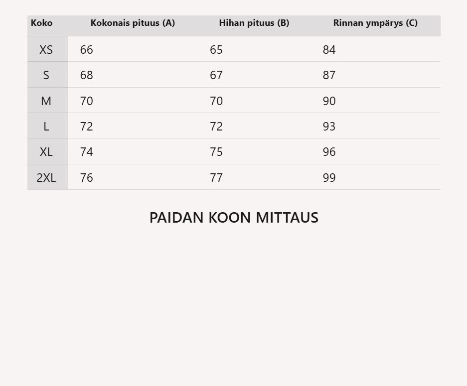 XS, S, M, L, XL, 2XLKatso kokotaulukko (JPG)