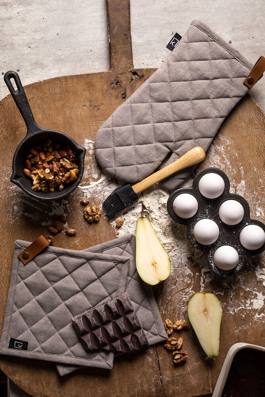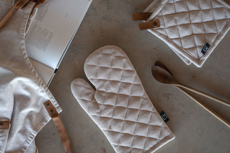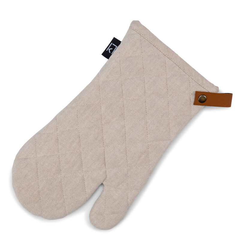 Kosta Linnewäfverin grillikinnas on valmistettu 100 % puuvilasta. Grillikinnas suojaa kättä kypsennyksen tai paistamisen aikana. Sisältää tyylikkään yksityiskohdan PU-nahasta käsineen ripustamiseen.