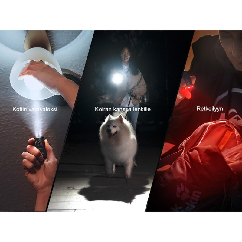 Erittäin pieni ja kompakti Fenix E03R V2.0 ladattava avaimenperätaskulamppu tarjoaa aiempaa suuremman max. 500 lumenin valotehon ja tuplasti pidemmän max. 90 metrin kantomatkan. Tuplasti kookkaampi akkukapasiteetti tarjoaa aiempaa pidemmät käyttöajat kaikilla kirkkausasetuksilla. Uusi innovatiinen pulssivalotoiminto (vihreä/punainen, punainen, vihreä vilkkuvalo) on todella näppärä lisäominaisuus. Laita lamppu vilkkumaan pulssivaloa ja kiinnitä se reppuusi tai koiran pantaan lisäämään huomiota. Pulssivalon avulla löydät lampun helposti myös pimeässä joten pulssivalolle on yllättävänkin paljon käyttöä. E03R V2.0 on valmistettu kestävästä alumiinista ja se on IP66 lukituksen mukaan pöly- ja roiskevesitiivis. Nopea EU-standardin mukainen USB C-tyypin latausliittimellä lataat lampun nopeasti käyttökuntoon. Fenix E03R on eräs markkinoiden suorituskykyisimmistä avaimenperälampuista.