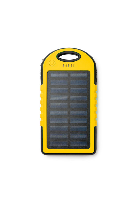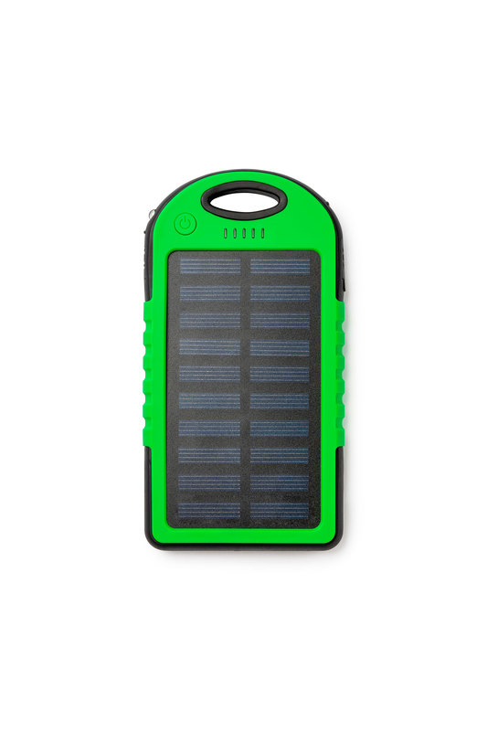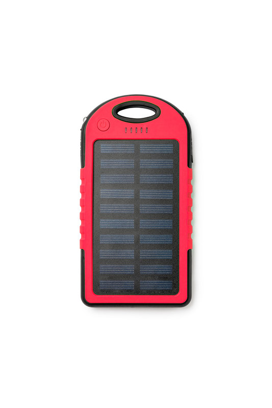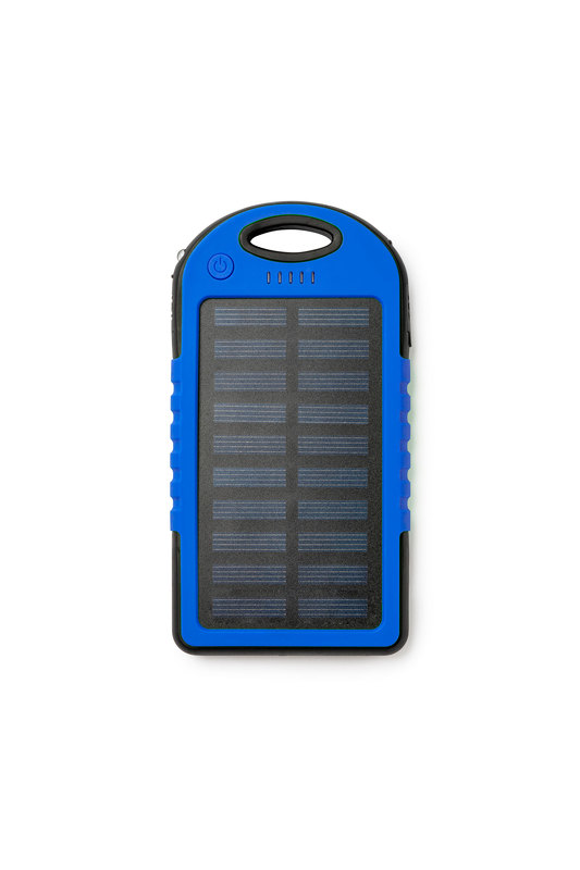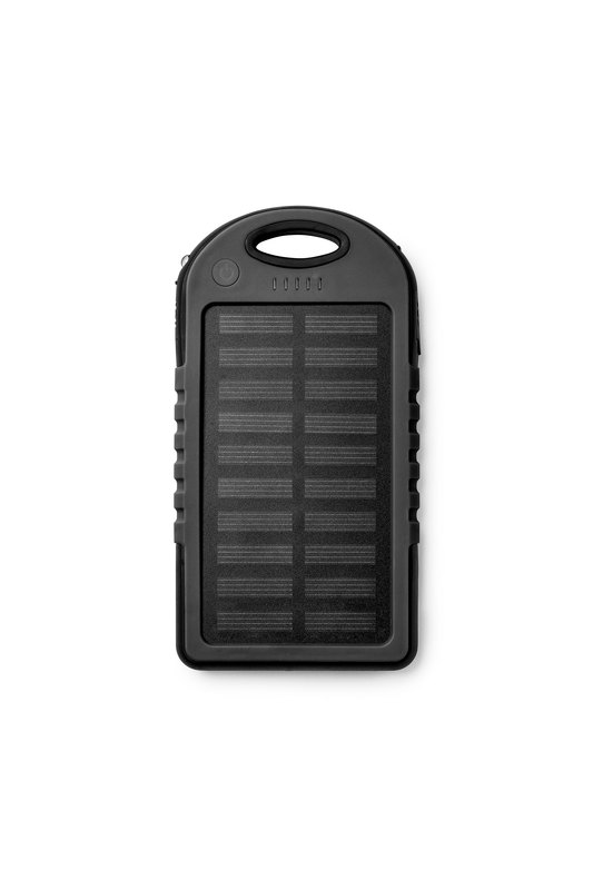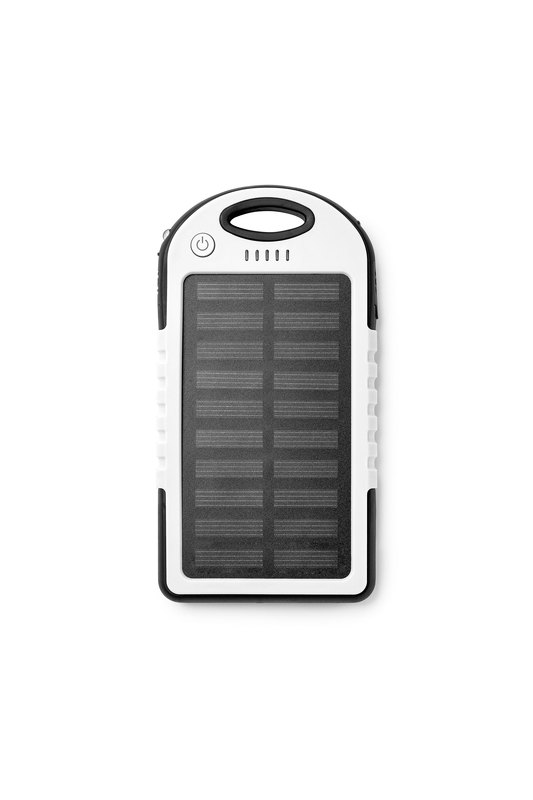 4000 mAh solar battery. LED charging and light indicator. DC5V/2.1A output. Micro USB cable included.