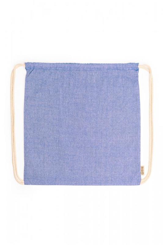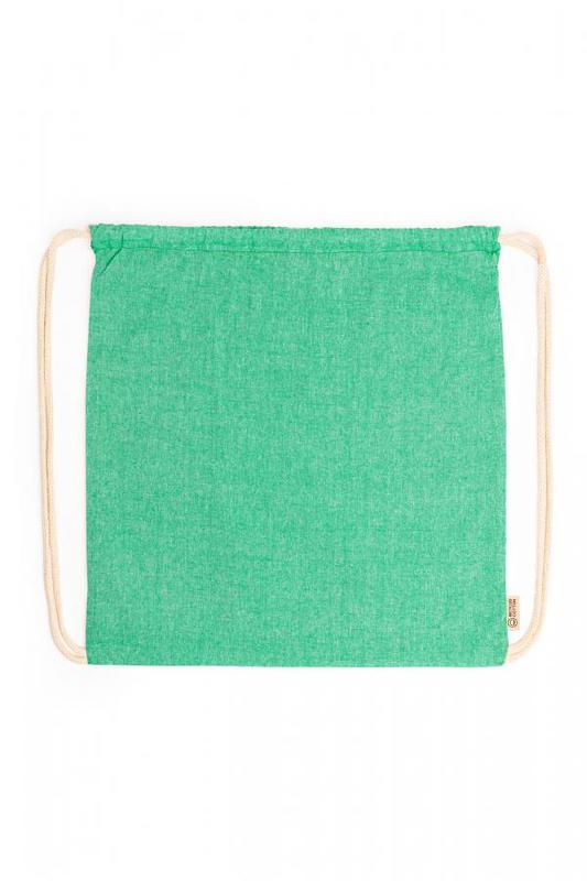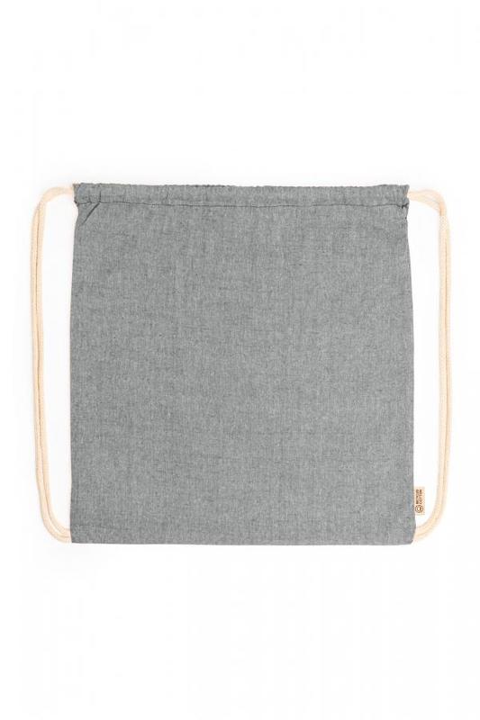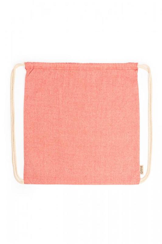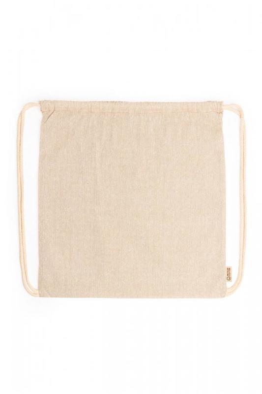 Kiristysnyörilaukku 120 g/m kierrätetystä puuvillasta, kanervanvärinen ja nyörit luonnonväriset.