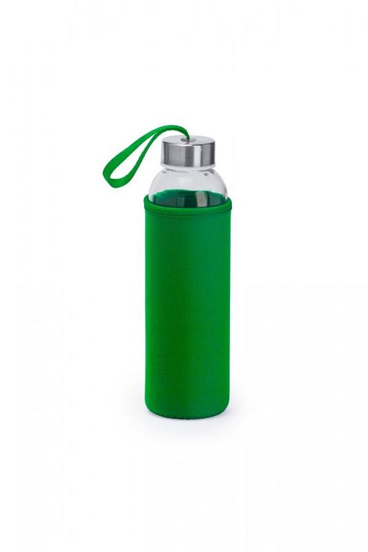 500 ml lasipullo. Pussi ja kantohihna samaa väriä.