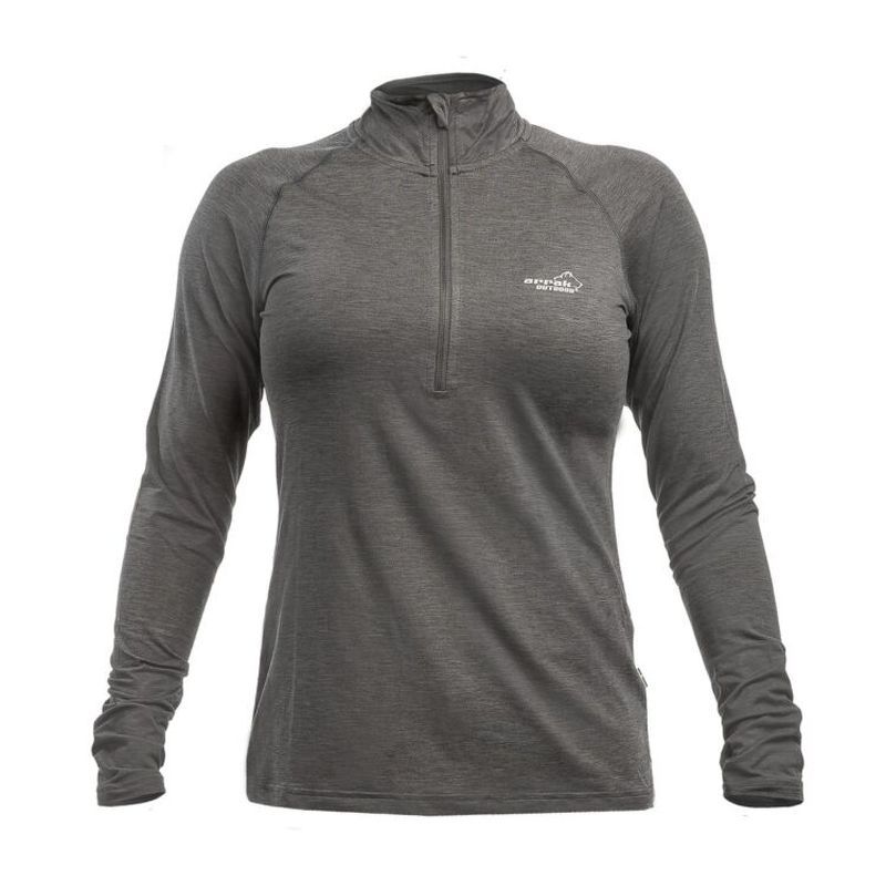 Arraks Action toppi 88 % polyesteriä / 12 % elastaania Erittäin pehmeää harjattua laatua. Täydellinen aluspaidoksi, treeniksi jne. Puserossa on lyhyt vetoketju edessä pystykaulus ja peukalokahva hihansuissa. Tiukka istuvuus.