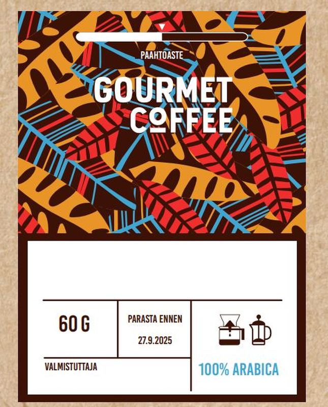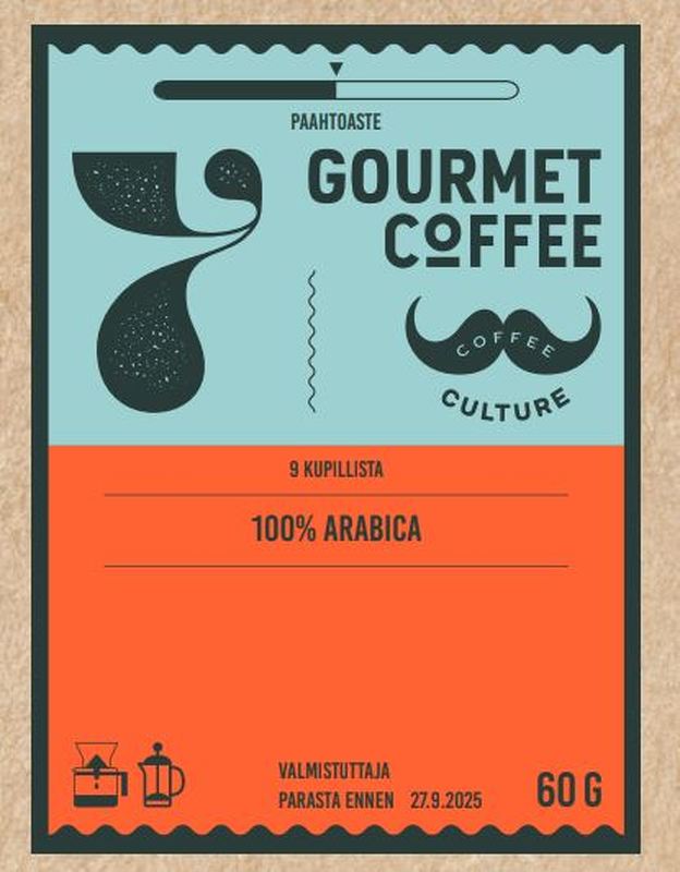 Valmisetikettejä joihin logotus tai täysin oma kuosi.