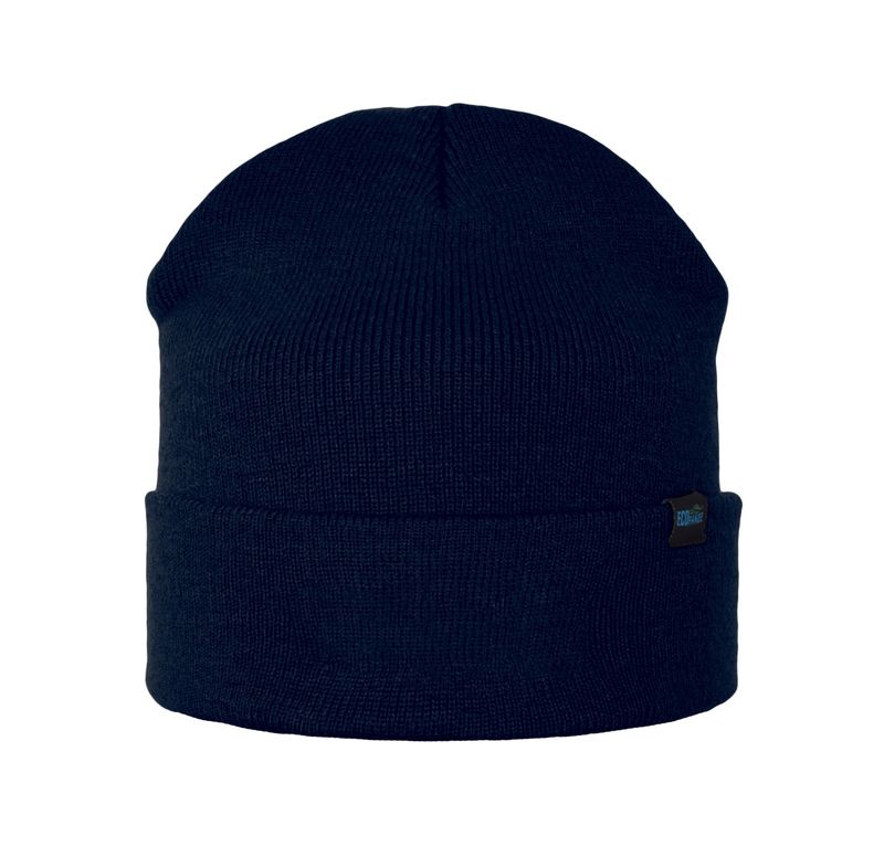 Perinteinen litteästi neulottu ja pehmeä pipo, jossa on mukava taitos ja kudottu ekologinen merkki reunassa. Valmistettu 50% akryylista ja 50% kierrätetystä polyesterista.