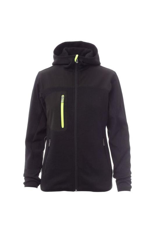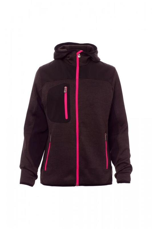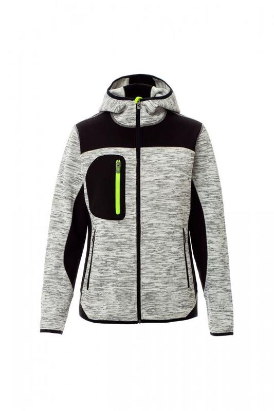 Neulottu polyesteri, softshell yksityiskohdilla