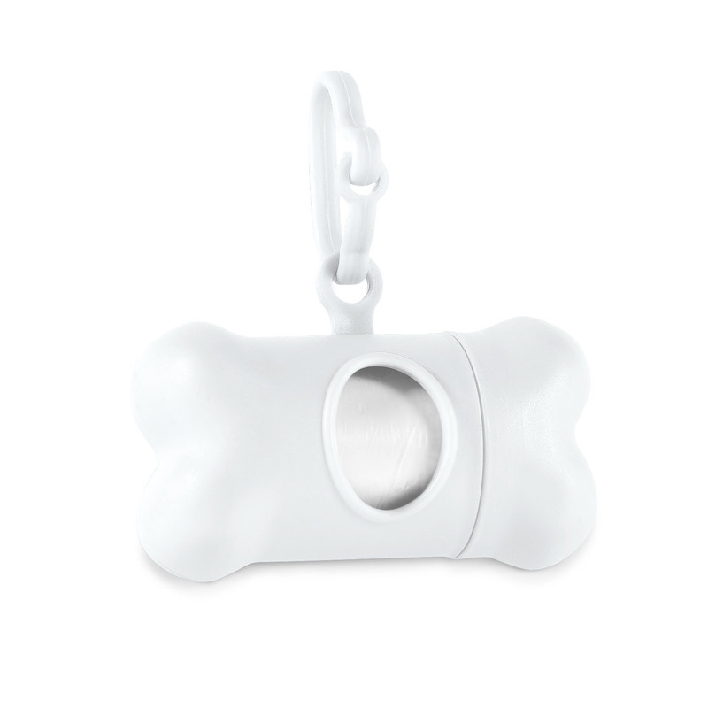 Luun muotoinen PP pussijakelija. Sisältää 20 PE-pussia. Suljettu: 111 x 21 x 15 mm