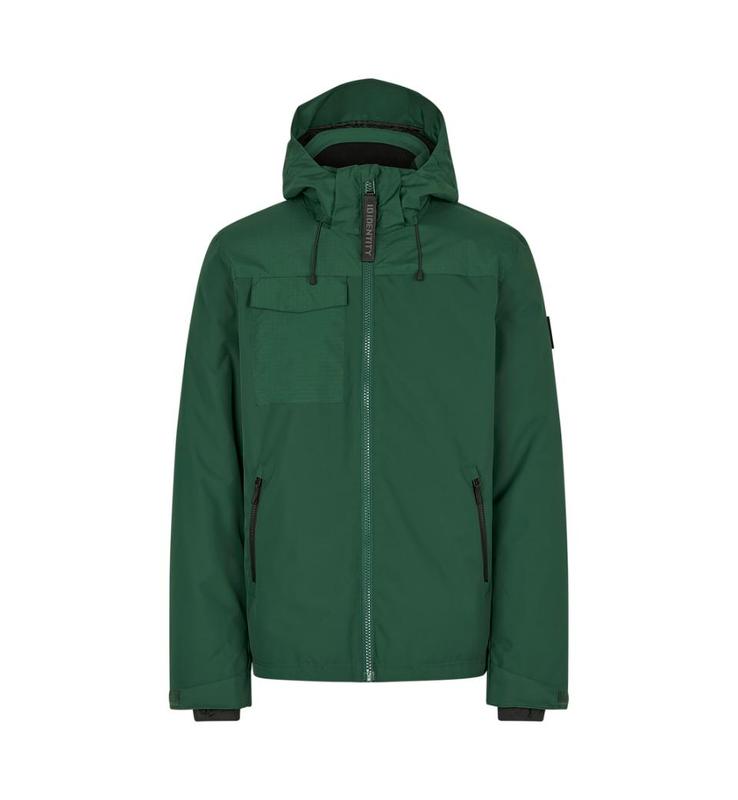 Casual and stylish winter jacket in ID Tech® recycled polyester quality with water-repellent, fluorine-free BIONIC-FINISH® ECO. THERMOLITE® T-DOWN filling made from recycled PET material. Collar in soft material and detachable hood. Sleeves with adjustable closures and inner wind cuffs. Lining in stretch mesh for extra mobility and comfort. Front zipper for attaching a print.