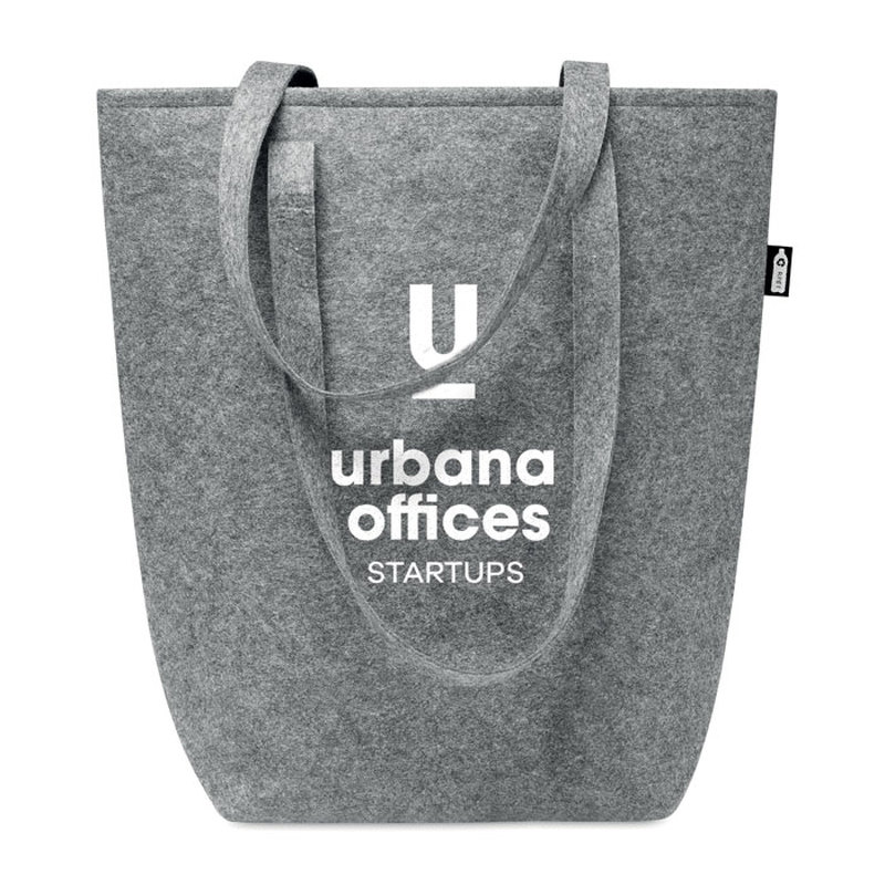RPET-huopakassi, pitkät kahvat ja pohjalevy lisäävät laukkujen kapasiteettia tavallisten muotoisten kasseihin verrattuna. Ota tämä kierrätetystä PET-muovista valmistettu kassi mukaasi päivittäisiin ostosreissuihisi. Pitkät kahvat helpottavat kassin kantamista käsissä tai olkapäälläsi. Huovan paksuus: 2 mm.