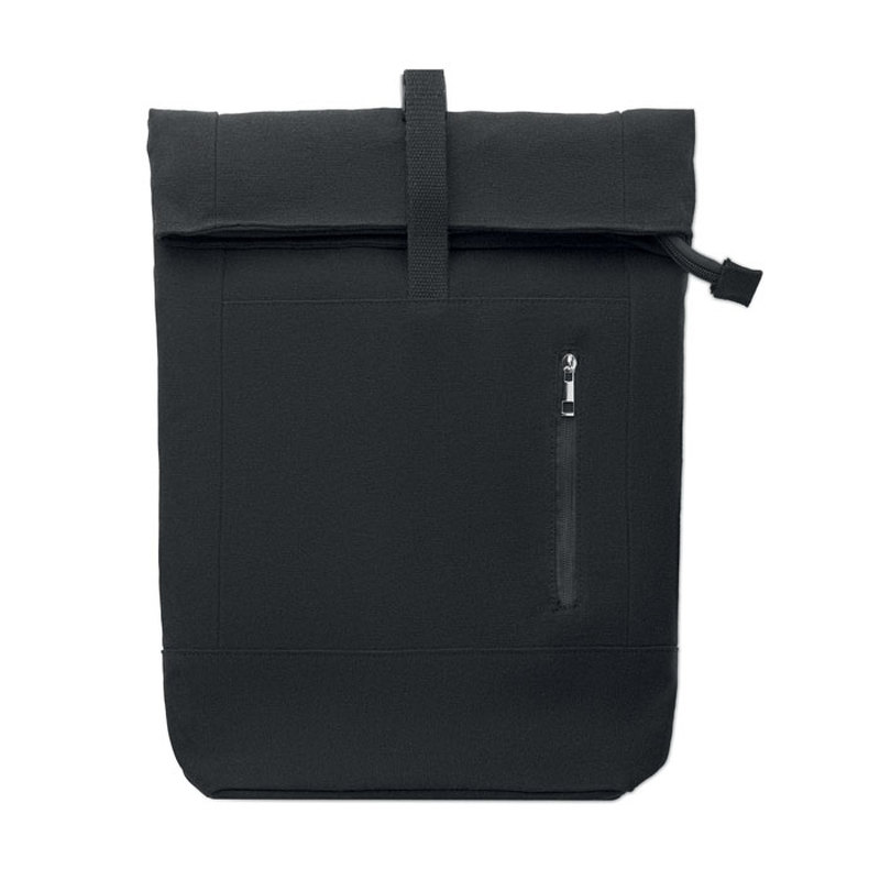 Materiaali: Kierrätyspuuvilla ja kierrätyspolyesteri (70 % / 30 %). Vetoketjullinen tasku edessä. Pehmustetut selkä- ja olkahihnat. 340 gr/m².