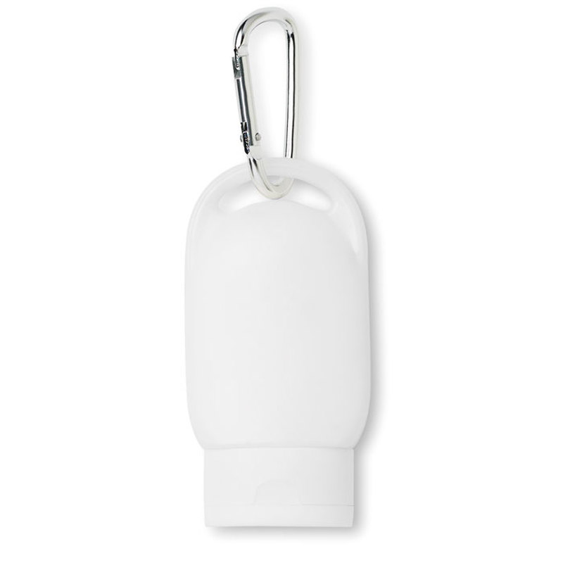 30 ml aurinkovoide karabiinikoukulla. Karabiinikoukkua ei ole tarkoitettu kiipeilemiseen (ei ammattikäyttöön) SPF25