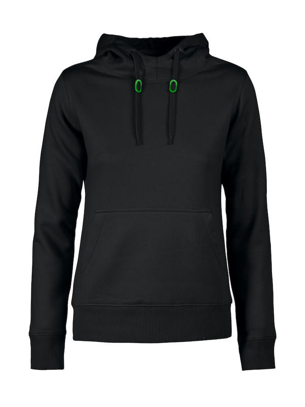 Naisten huppari, jossa puolikuuleikkaus niskassa, sekä 2x2-ribbineulos hihansuissa ja helmassa. Kontrastiväriset stopperit hupun kiristysnaruissa. Vaihdettavia stoppereita myydään erillisissä pakkauksissa. Oeko-Tex-sertifioitu.