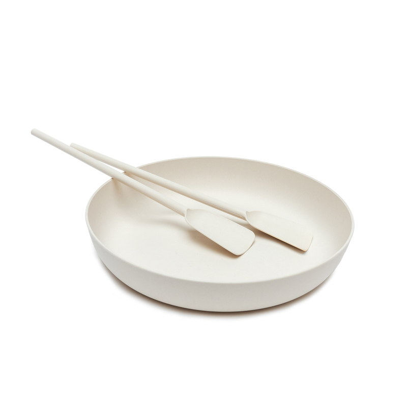 Käytännöllisen salaatti-/tarjoiluvadin materiaalina on nerokas suomalainen innovaatio, jossa puupohjainen biokomposiitti sekoitetaan polypropeeniin. Puun osuus massasta on 40?%, jonka ansiosta siitä saadaan kestävä, kaunis ja ekologinen raaka-aine, josta tehdyt tuotteet ovat jykevän tuntuisia, tyylikkäitä ja pitkäikäisiä.