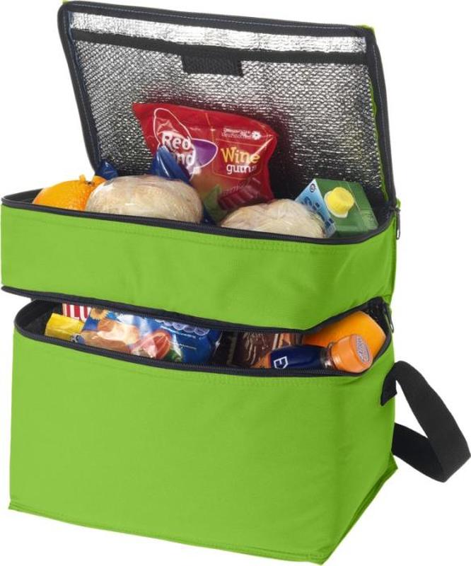 Juomat ja välipalat pysyvät kylmänä milloin ja missä tahansa Oslo-kylmälaukun avulla. Kylmälaukussa on kaksi erillistä vetoketjullista lokeroa. Ylempi osa sopii täydellisesti pienten välipalojen säilytykseen ja alempi osa sopii erinomaisesti isommille ruokatavaroille. Olkahihna on säädettävissä, joten laukkua on helppo kantaa mukana. Kylmälaukku on valmistettu 600D-polyesteristä joka on kestävää kangasta. 600D Polyester.