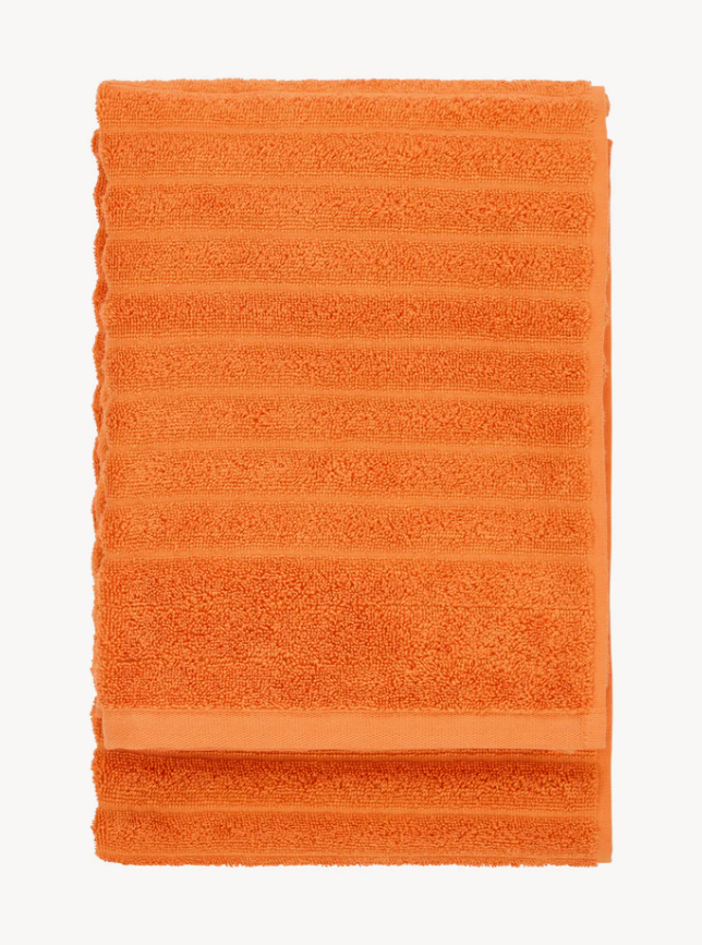 117000Sophia puuvillainen käsipyyhe, 450 g/m², 30x50 cm Korkealaatuinen ja kestävästi valmistettu 450 g/m² kylpypyyhe, joka on ihastuttavan paksu, silkkinen ja erittäin pehmeä iholle. Tämä tuote on ÖKO-TEX® STANDARD 100:n mukainen. Se takaa, että tekstiilituote on valmistettu kestäviä prosesseja käyttäen ympäristöystävällisissä ja sosiaalisesti vastuullisissa työolosuhteissa ja ettei siinä ole haitallisia kemikaaleja tai synteettisiä materiaaleja. Saatavana useissa kauniissa väreissä täydentämään mitä tahansa kodin tai hotellin kylpyhuonetta. Pyyhe on värjätty värjäysprosessilla, joka vähentää makean veden tarvetta ja estää vesipohjaisille värjäysprosesseille tyypillisen saastuneen veden suuret määrät. Pyyhkeen koko: 30x50 cm. Valmistettu Euroopassa. Sophia puuvillainen käsipyyhe, 450 g/m², 30x50 cm