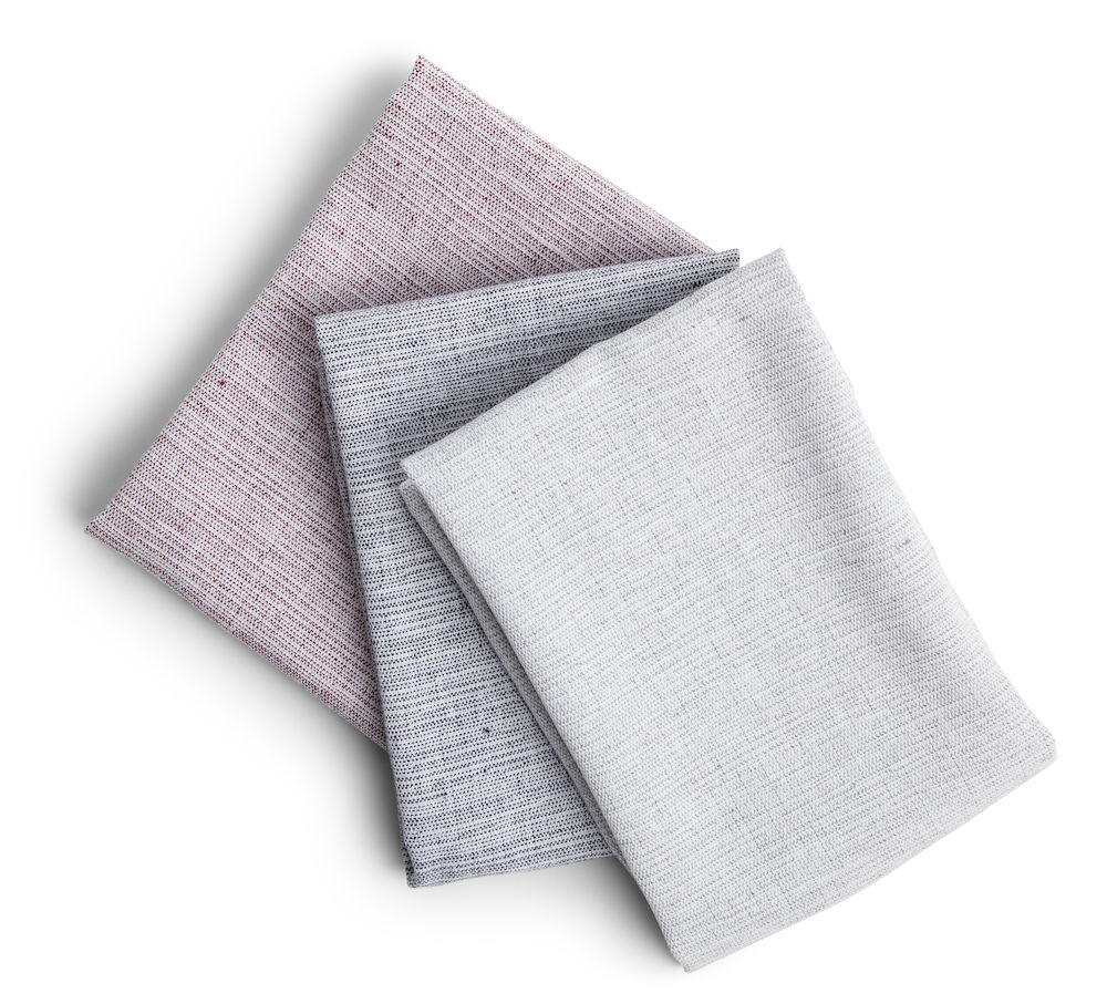 Materiaali: 70 % kierrätyspuuvilla, 30 % polyesteri. Värit: viininpunainen 38, t.sininen 58, harmaa 95.