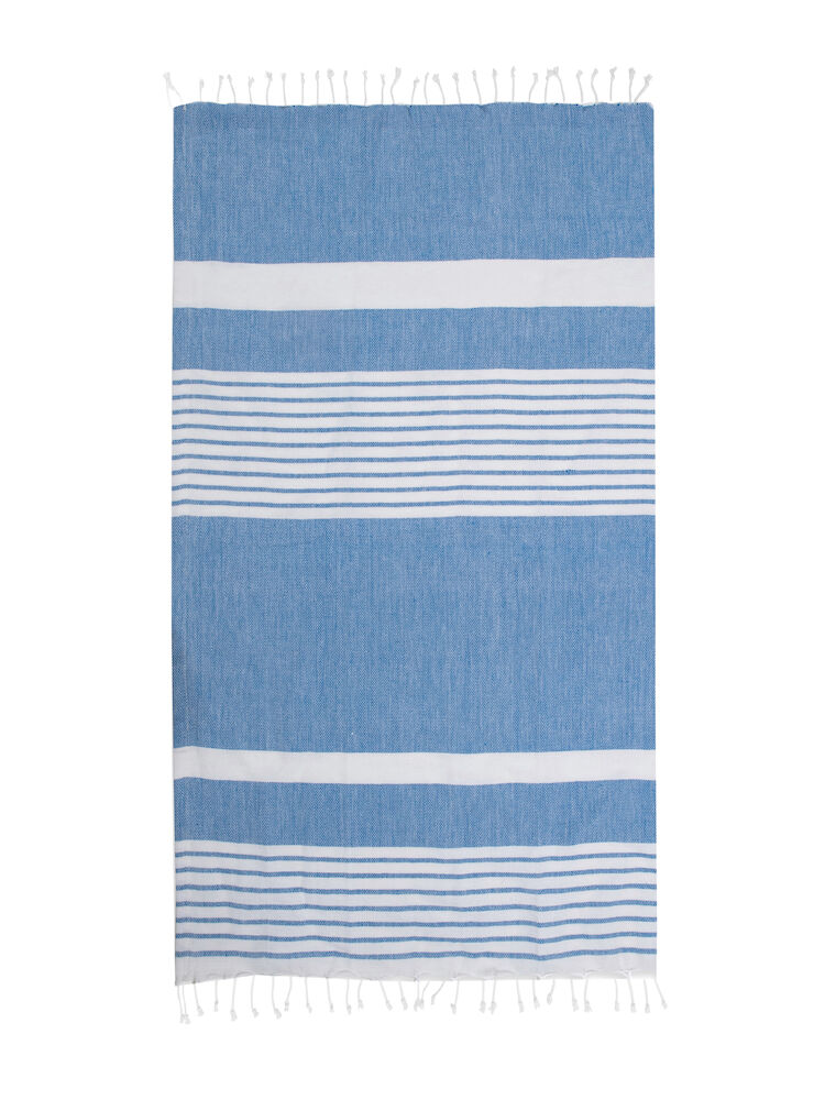 Ella hamam 145x250cm, sininen Ella Hamam 145x250 on ajaton pyyhe ohuesta luomupuuvillasta. Kaikki pyyhkeet on koristeltu Sagaformin klassisilla raidoilla ja on saatavilla kolmessa väriyhdistelmässä: vihreä, sininen ja beige. Hapsutetut päät. GOTS-sertifioitu. Käytämme Ellaa mielellään rannalla, pöytäliinana, piknikpeitona tai sängyn reunalle heitettynä sisustusyksityiskohtana.