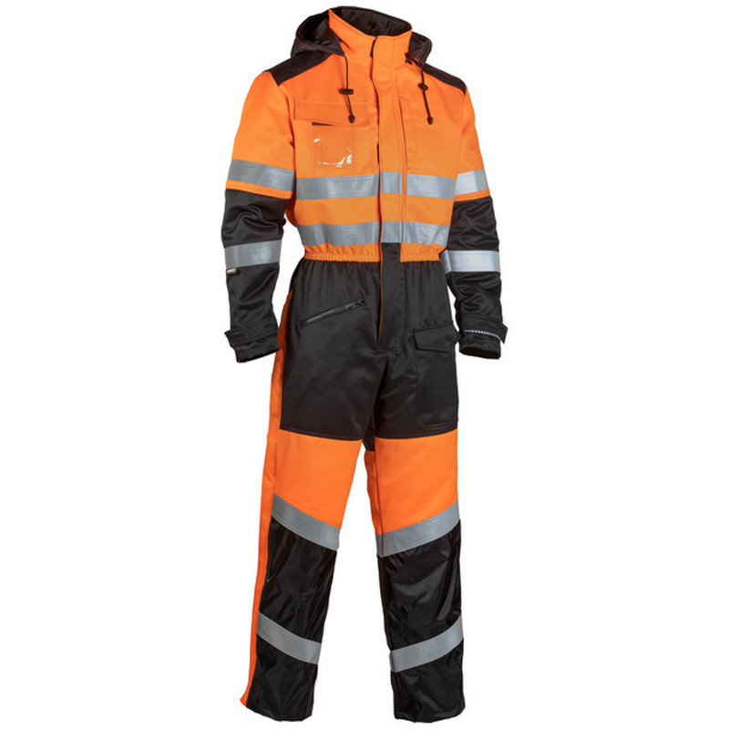 Talviavohaalari palosuojattu FR 1.0, lk 1 Tikkivuori lahkeissa, edessä huulen alla vetoketju, 2 rintataskua, kansissa tarrasulku, vasemman rintataskun päällä kynä/puhelintasku, oikealla rintataskussa henkilökorttitasku, tarrasulku taskun kansissa, takatasku ja vasaralenkki, reisitasku kannella, mittatasku, polvisuojataskut sisäpuolella, vyötäröllä takana kuminauha, leveät vyölenkit ja tunnelit, edessä olalla pidennysvara, selässä kuminauhajousto, lyhyet lahjeketjut polviin asti. Standardit: Näkyvä EN ISO 20471, lk 1, Kuumansuoja EN ISO 11612 A1 B1 C1 E1 F1, Hitsaus EN ISO 11611 luokka 1 A1, Valokaari EN 61482-1-2 luokka 1 [4kA]