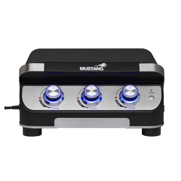 Kaasugrilli Plate 3 Pöydällä pidettävä plancha/parilagrilli kolmella polttimella. Polttimet 3 x 2,5 kW. Kokonaisteho 7,5 kW. Grillausala 41 x 35 cm. Plancha/paistoparila valmistettu emaloidusta teräksestä. Grillin runko ja kansi valmistettu pulverimaalatusta teräksestä. Ohjauspaneeli ruostumatonta terästä. LED valot säätönupeissa, jotka vaihtavat väriä, kun poltin on päällä. Paristotoiminen sytytys. Voidaan grillata/paistaa myös kansi kiinni. Parila on helppo irrottaa pesua varten. Grillin alla ulosvedettävä rasvakaukalo. Vain ulkokäyttöön. Takuu 2 vuotta.